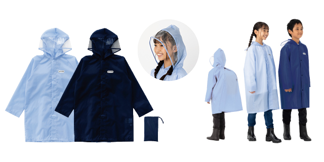 ・視界の確保が可能な、フードに透明ひさし付き