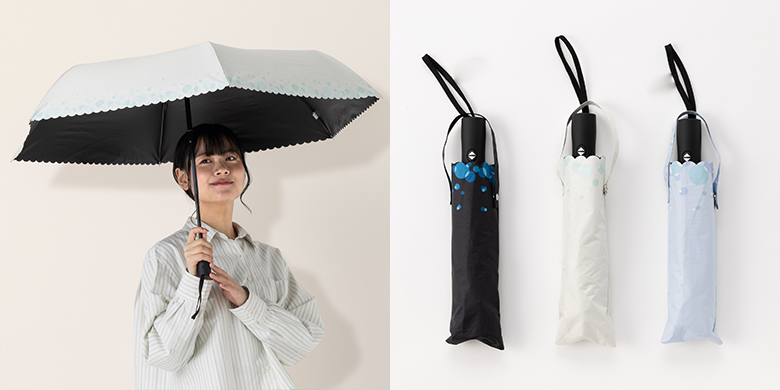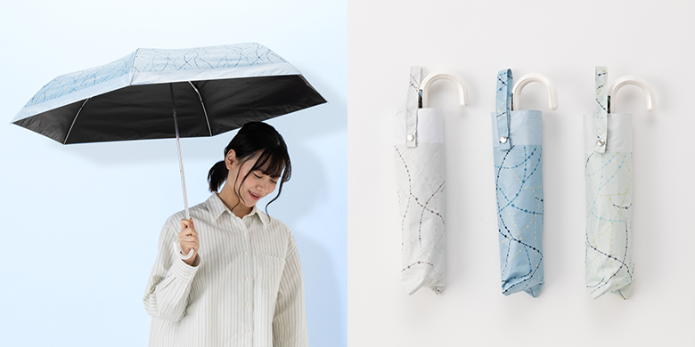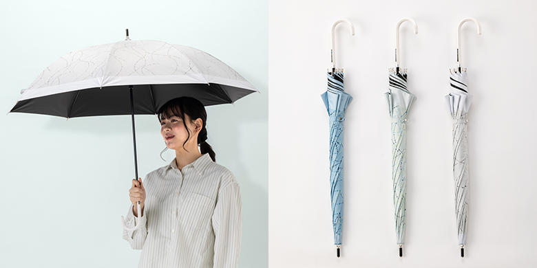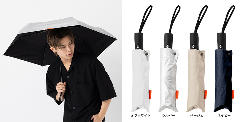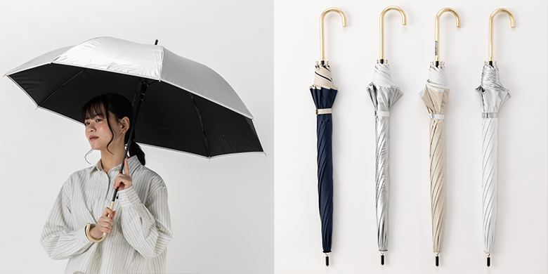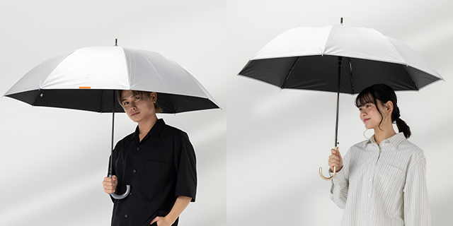 太陽からの熱を軽減する遮熱効果と、UVカット率99%以上・遮光率99%以上で、天候問わず使用できる実用性の高い傘です。
